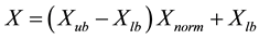 If variables are normalized to have values between 0 and 1, If not the range of values is between Xlb and Xub, then the unnormalized values are given by: