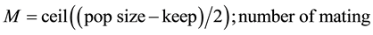 keep=selection*Npop; M=ceil((Npop-keep)/2); % number of matings