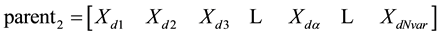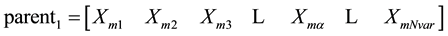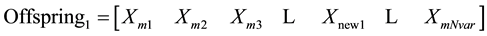 To begin the GA, we define an initial population of Npop chromosomes. A matrix represents the population with each row in the matrix being a 1 × Nvar array (chromosome) of continuous values. Given an initial population of Npop chromosomes, the full matrix of Npop × Nvar random values is generated by: