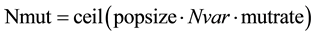 Nmut=ceil((Npop-elite)*nvar*Pm);% total number of mutations