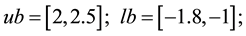 ub=[2,2.5]; lb=[-1.8,-1 ]; % variable limits